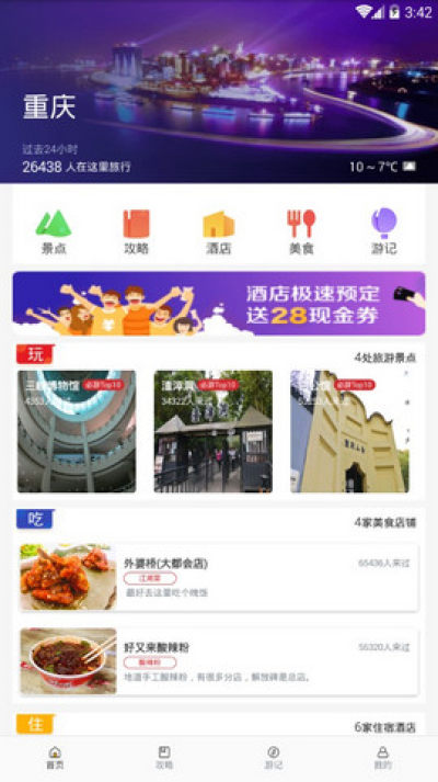 七彩游,给你带来更佳旅游服务的手机软件。在七彩游app中你可移动各地旅游资讯,纵览各景点详情,以及掌握周边小吃、购物和酒店详细等。