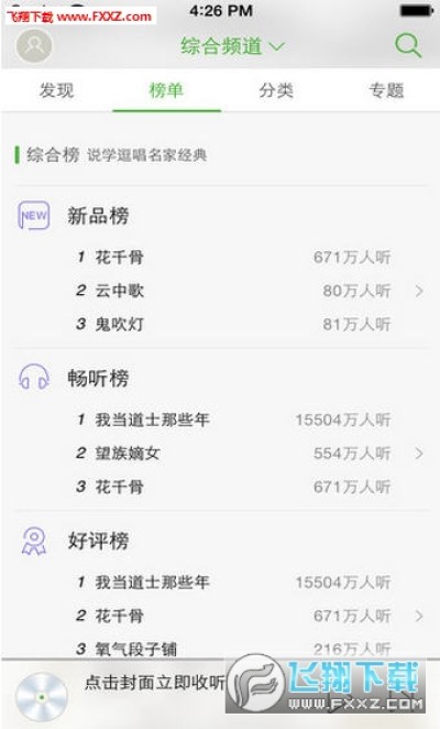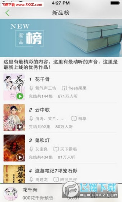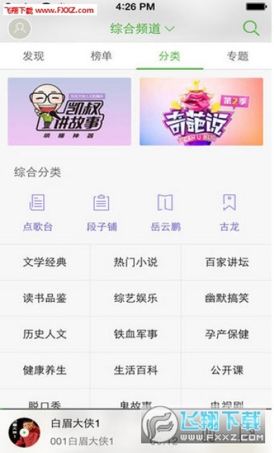 100,000小时有声内容,20,000部有声作品,汇聚评书相声、都市言情、武侠奇幻、儿童读物、幽默笑话等20个大类