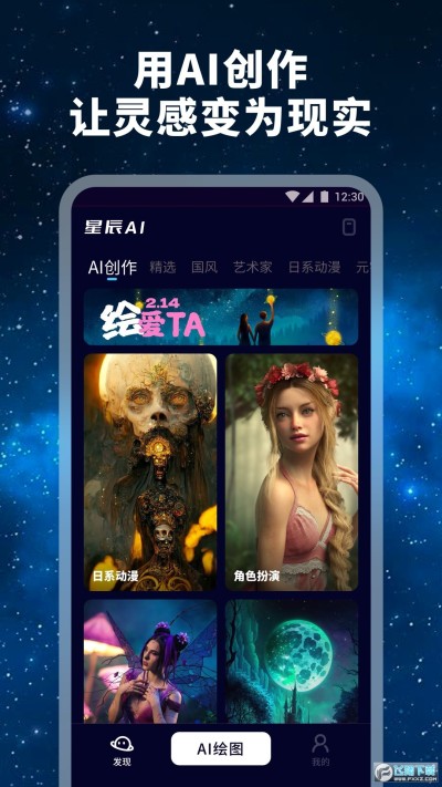 星辰AI智能绘画APP官方版是一款目前非常流行的ai绘画软件,旨在帮助艺术家更轻松、高效地创作数字艺术作品。该工具使用人工智能算法进行深度学习,根据用户的创作手法和喜好进行自我学习,并生成更符合用户要求的绘画作品,从而提高绘画的质量和艺术效果。