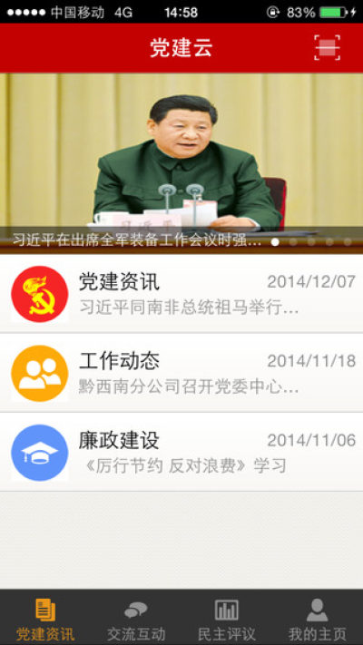 贵州党建云是中国移动通信集团贵州移动有限公司研发的一款集党建宣传、党务办公、民主评议、交流互动等应用于一体的,主要是面对集团的党员用户群,通过应用可以方便,快捷的进行党务办公,交流互动等。