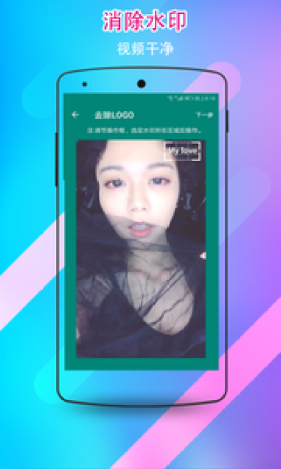 视频去水印logo:拖动选取框轻松选择短视频中水印部分,一键快速去除短视频水印!瞬间短视频变得清爽干净!