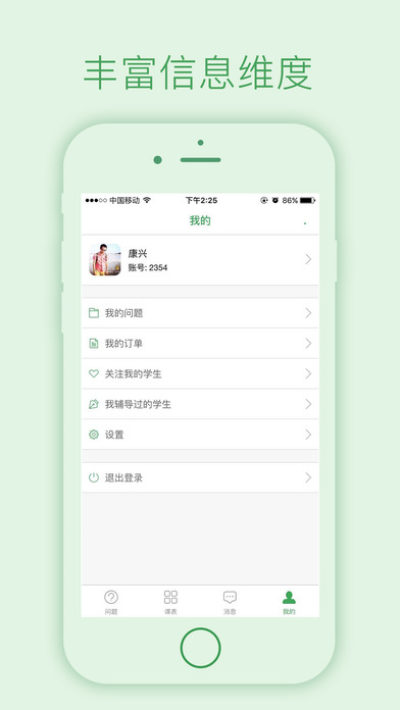 答疑君老师客户端,可以完成答疑、交流、查询辅导、查看评价消息、设置个人信息等功能。方便老师实时操作及时与学生沟通,利用自己的碎片时间,完成线上答疑辅导服务,获得收入。