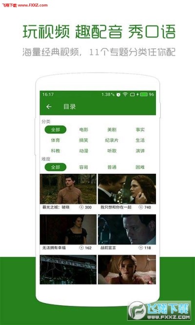 英语口语秀是一个非常专业的英语口语学习软件,这里为大家提供了很多经典的电影和视频,全部都是英语配音,你直接通过它来练习自己的口语是很有帮助的,这款软件的所有学习资源都是免费提供给大家的,有需要的朋友可以来这里免费下载哟!