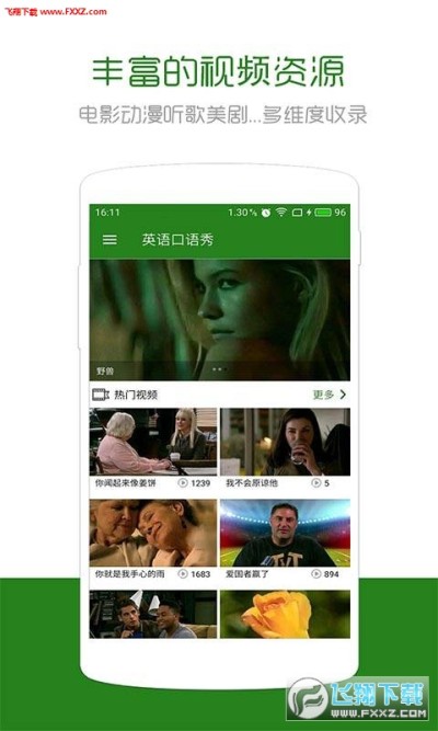 2.【丰富的素材】火爆带感的美剧、基情满满的英剧,流行动感的英文歌曲,不断更新的动漫、纪录片、搞笑剧、经典演讲等视频更是应有尽有!