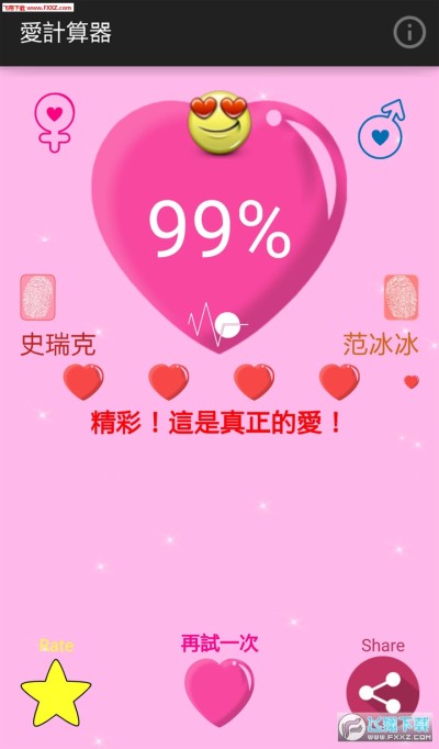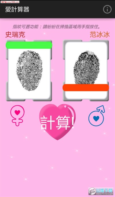看截图,小编又相信爱情了。输入你和对方的名字,按下你们的指纹,计算你们的匹配程度。。。。今天跟女神\男神使用非常适合,小编只能帮你们到这里了。。。