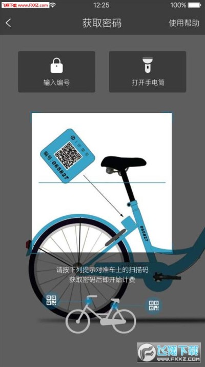 2.扫描车身二维码或者输入车辆编号获取解锁密码;