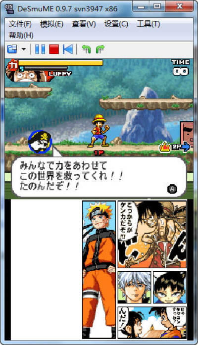 这款游戏由任天堂与日本集英社合作制作发行,路飞、黑崎一护、漩涡鸣人等等大家耳熟能详的漫画人物齐聚一堂开始大乱斗。游戏总共整合了YOUNGJUMP中共40部作品超过300名角色搬上NDS平台。每一个都是人气明星,每一个都是耳熟能详。