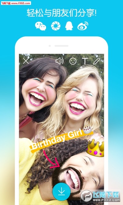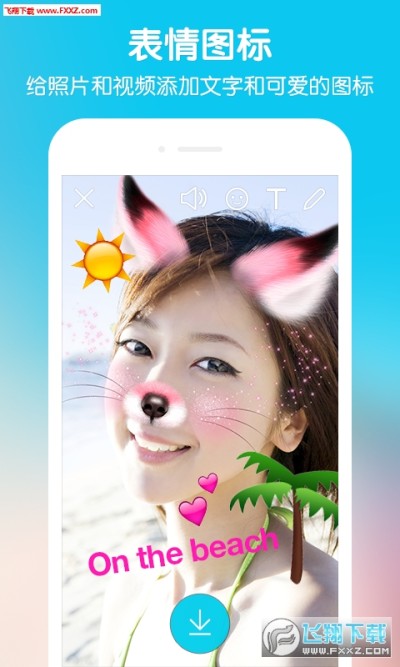 脸部自动识别,轻松拍摄激萌或恶搞的视频或图片,告别单调,让拍照更有趣,从此爱上自拍!