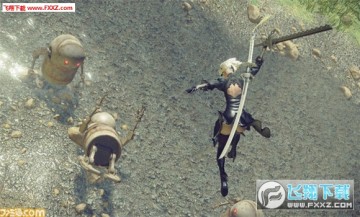 图中的2B面对在沉水都市中的机械生命体,用空手展开了战斗。空手状态时算作格斗,同时与其它格斗武器相比还有空手专有的动作。