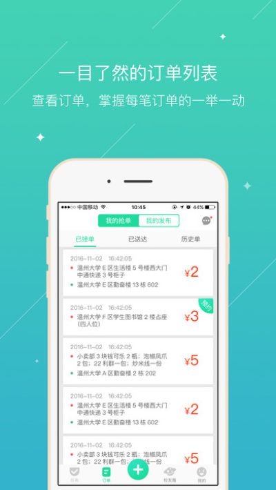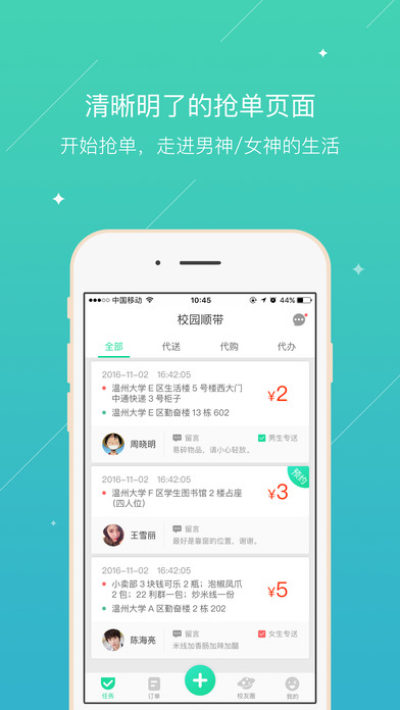 校园顺带是一个校园生活服务平台,如果你需要人帮助你将一件物品由一个地方送到另一个地方的话可以到这里来发布任务,会有专人来接单为你服务,同时你也可以在线接单来通过为他人服务而获取收益,感兴趣的朋友快加入进来吧!