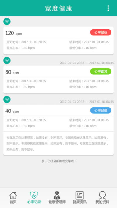 4.基于用户的心率数据及其健康数据的变化趋势分析,由宽度医生专家给用户提供健康警报服务。