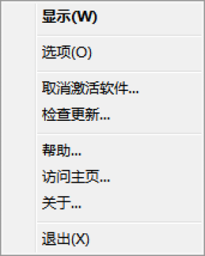3、点击鼠标的右键,出现下图选项,包括了帮助、关于、退出等;