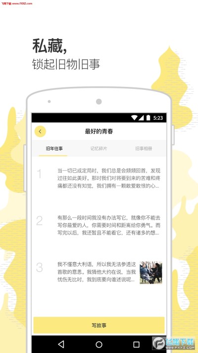 我们尊重每个人的隐私,你的档案将珍藏在私密空间中,需要手势密码才能解锁编辑和阅读。你的一切都将存储于云端保存,让你不会因设备丢失而失去这些回忆。没有你的允许,这些内容都不会被公开。