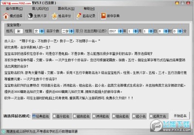 6. 支持自助起名模式,可以自己设定名字五行及笔划数进行半人工和全人工起名。