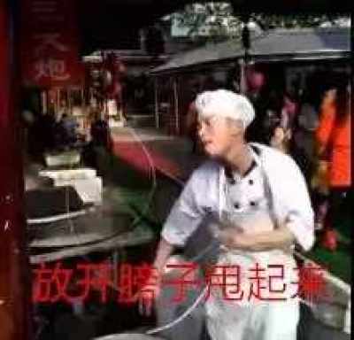 视频中,田波一边跟着音乐律动旋转跳跃,紧闭着双眼,一边拉动着手中的面。有网友评论,绝对表演型人格,这小哥业务能力强得没话说。