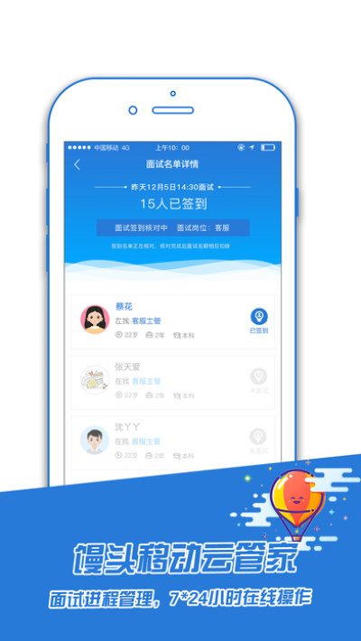 馒头云面试是馒头工作最新推出的移动SaaS管理工具,从创立之初即确立以中小企业为服务对象,依托对行业的深入理解及业界领先的云数据+移动SaaS模式,专注为中小企业解决客服、销售等基础岗位招聘这个最核心、紧迫、需要专业服务的需求。免去企业发布职位、购买简历、筛选匹配、电话邀约面试等一系列繁琐的招聘工作,致力于让招聘变的简单有效,让招聘从面试开始!