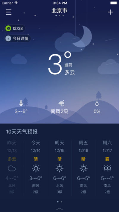 2、操作方便:上下滑动的操作方式,可更快速更便捷的查看天气趋势、风速、生活指数等信息;
