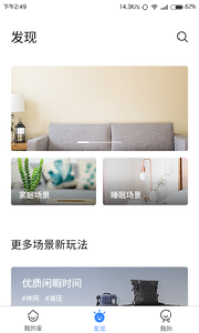 2.新增“智能场景”模块,让设备与设备之间互联互通,带你进入智慧生活;系统会根据你绑定的设备及行为习惯推荐相匹配的智能场景,也有多种自定义场景条件,帮你制定专属场景。