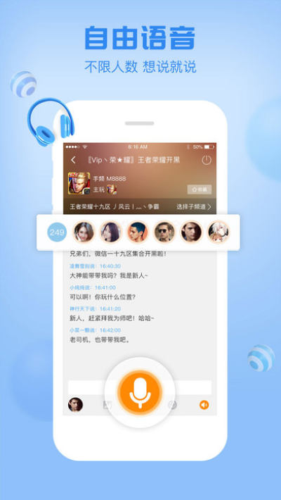 [自由音频模式]无论你的战队是5人、50人还是500人,都可以无限制语音,所有人想说就说!