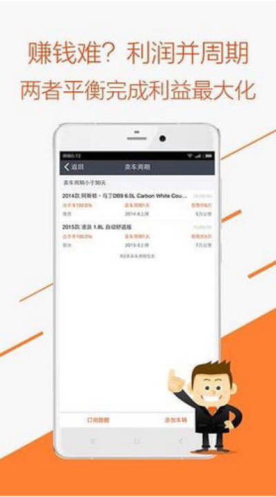 【卖车周期】输入预售价计算售车周期和单笔利润平衡点,提高资金利用率。