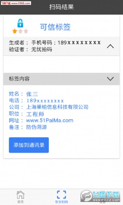 3、手机一拍,马上获知二维码、NFC生成者的真实身份,不法分子再也无机可乘。