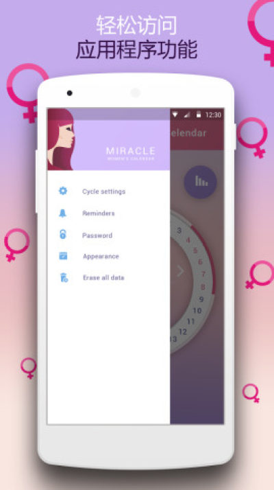 设置月经周期提醒,及时获得即将到来的期间的通知。排卵跟踪器将允许您设置获得孕 的最佳时间。期间提醒对于每个喜欢控制一切的人也是不可或缺的。你永远不会被惊喜了!