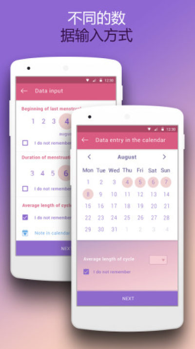 月经周期计算器将计算出您的每月周期长度并预测下一个周期的开始。尼斯周期日历跟踪器清楚地表示时期信息,以及生育和排卵日。你可以为您选择最适合的日历记事本的外观。