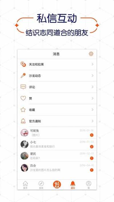 好友私信:和你关注的人私信聊天,结识和你有共同兴趣的人。