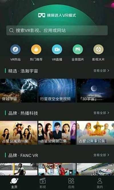 在VR视频资源上,百度VR浏览器有多达15000部VR视频,每天更新。用户可以在主页看到品牌专区,呈现了来自多个品牌合作商的VR视频,涵盖明星娱乐、户外体验、美女、萌宠等丰富且优质的资源。