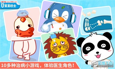 在这款游戏当中,小朋友跟着长颈鹿医生,选择合适的治疗手段来帮助小动物治病吧~~