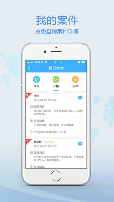 - 我的案件,管理警员未接、已接和已完成的案件。