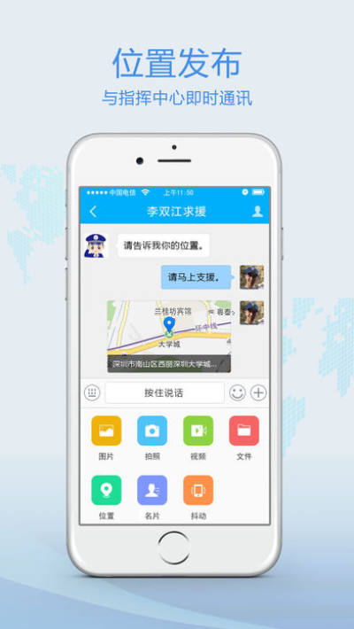 - 会话,警员之间,警员与指挥中心沟通协作。