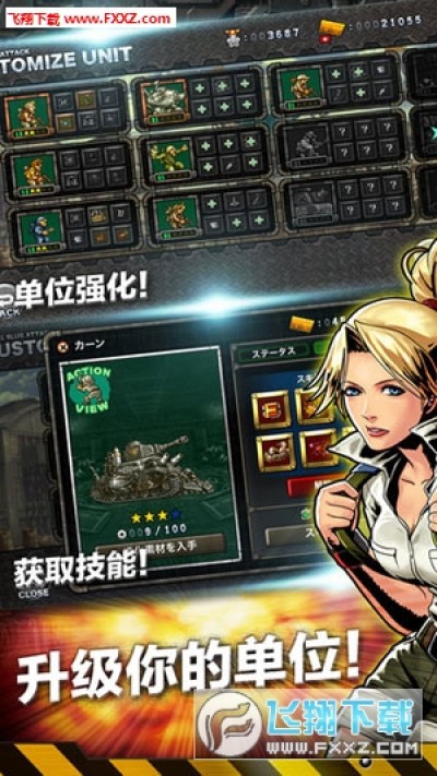 与工会好友协力过关的【工会突击】与【特种部队】等模式为首,更搭载聊天功能和邮件功能,与意气相投的朋友一起感受万能战车合金弹头的世界吧!