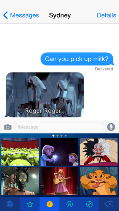 迪士尼Gif苹果版软件让喜欢漫威电影、迪士尼动画的你有了一个超大的gif图库,在和别人斗图的时候你可以想发什么就发什么,还有各种可爱边框,任你选择,需要的小伙伴们快来下载Disney Gif iPhone版软件吧