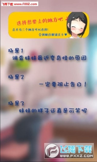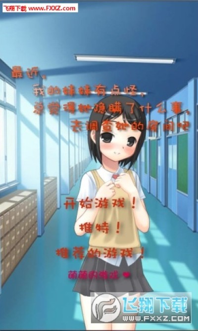 场景一:多点几次毛绒玩具熊(是床头墙上的那个,不是书桌上的那个哦),得到妹妹的照片,让你知道什么叫傲娇。将房间里所有东西都调查一遍,注意床不可以闻,垃圾桶不可以翻,桌子最多只能点三次哦,如果发现手机的话,下一秒你就game over啦,全部调查完后点床尾那个粉红色的包,在包里得到柜子钥匙。打开柜子,读了发现信原来是情书!【妹控之魂燃起】但是不能扔的哦!