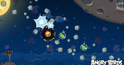 以前,玩pc版愤怒小鸟要想瞄得准,可谓“拼人品和技巧”。但现在就不同了,在发射前,就已能显示出其运动轨迹了。这点有些像the Gears of War系列的手榴弹的轨迹描绘。在太空版的游戏中,物理特性将会有所不同——射出的小鸟在没有重力影响的时候,轨迹是完全直线的;而一旦有小行星等重力吸引,小鸟的轨迹就会相应发生变化,想要在《Angry Birds Space》中过关斩将的话,就必须要掌握好这一简单的原则。此外,新游戏里还有BOSS,就像里约版一样。