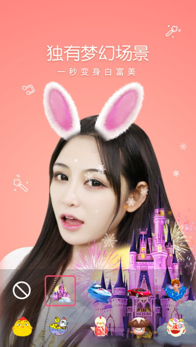 【萌颜特效】兔耳动、猫须、腮红,超级多萌颜效果,轻轻一点,自然的呈现在你脸上。花椒独有梦幻城堡、豪华邮轮、蓝色妖姬、等豪华场景特效,让你一秒变女王;