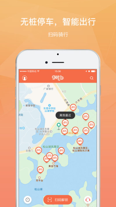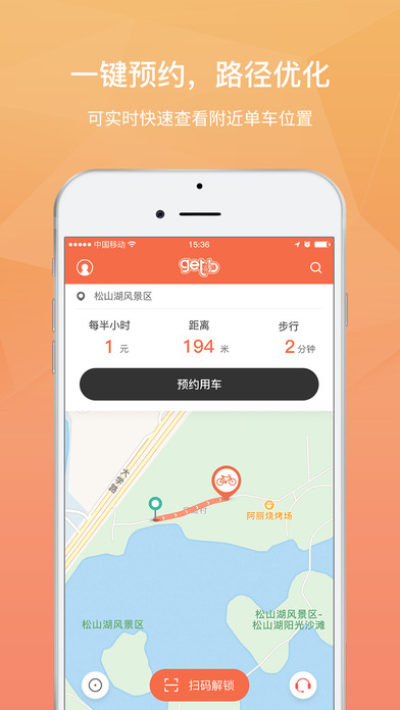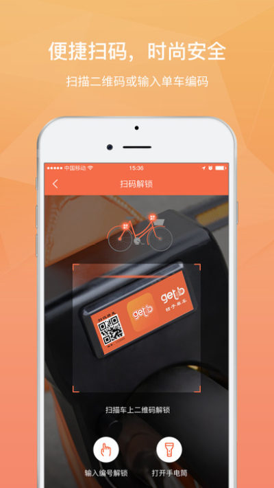 点击扫码,扫描车上的二维码或手动输入二维码下方的单车编码解锁用车