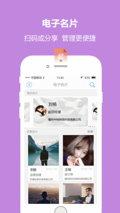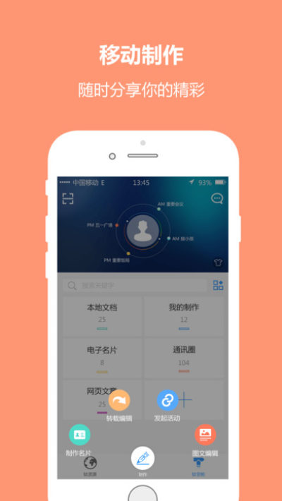 电子名片\图文编辑\发起活动等,随时随地记录灵感,尤其是电子名片功能,实用有逼格。