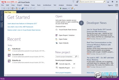 直接从起始页面创建一个可搜索模板的新项目和最近使用的模板列表。最近使用的模板还将使用个性化帐户在 Visual Studio 实例之间漫游