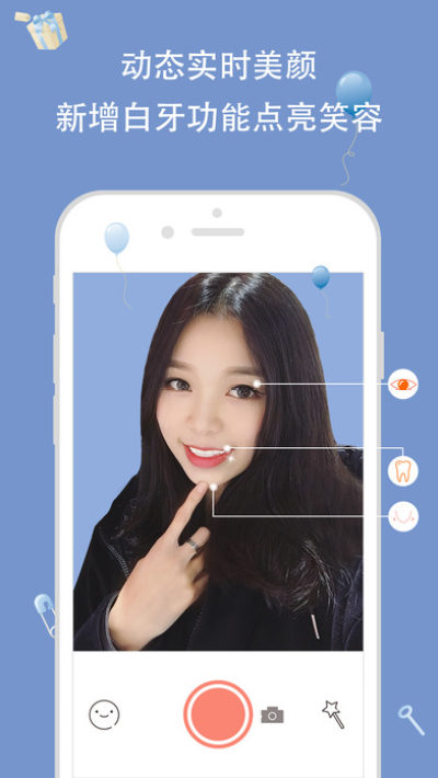 视频磨皮算什么美颜,要的是硬币眼、细高鼻、巴掌脸、大白牙!多种实时动态美颜功能,细致调整五官,边拍边美,给你照镜子般的惊艳体验。