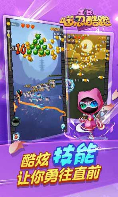 全民喵忍酷跑手游无限金币是一款以可爱萌趣酷炫的喵咪忍者为主角的跑酷休闲手游,全民喵忍酷跑手游无限金币也是一款玩家在游戏中会获得大量用不完金币的破解游戏,全民喵忍酷跑手游无限金币游戏中玩家不仅可以像是在原作游戏中一样选择自己喜欢职业类型喵咪忍者的同时还可以跟随着他来到有着暗黑魔幻充满无数机关和怪物的世界展开属于你的无尽狂奔之旅,并且还会在游戏中获得大量用不完的金币!
