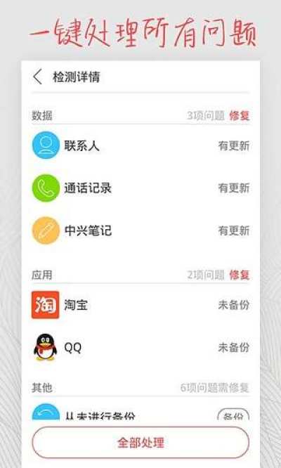 1. 除基本数据外,还支持WIFI密码、部分系统设置、图片等多媒体数据的备份和恢复,个人信息全管理;