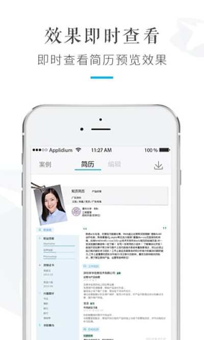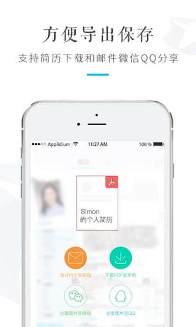 就算电脑不在身边,只需下载使用知页APP就可以随时查看和修改简历,同时支持pdf导出和邮件分享。