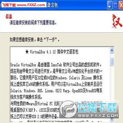 1、软件为免费版,请先安装vbox虚拟机原版,退出程序后再安装汉化语言包,安装包会自动检测安装路径,请不要更改。