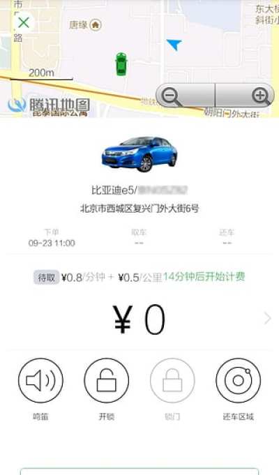 共享汽车按用车时间和行程里程计算用车费用,无起步价。以北汽EV160车型为例,价格按时长费0.4元/分钟、公里费0.5元/公里收取。如使用30分钟,行驶12公里,那么费用就是30×0.4元+0.5×12,共计18元。现在巴歌出行正在开展五折活动,折后价只要9元,加上每单(24小时之内)保险费4元,只需要支付13元,现在注册APP,还能获得共计118元的优惠券,可以全额抵扣车费。