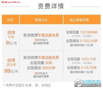 此外,该卡分为V卡以及大V卡两款可选,价格分别为9元和69元,其中V卡包含1GB全国流量,大V卡包含3GB全国流量,并且在刷官方微博客户端时享受免流服务。