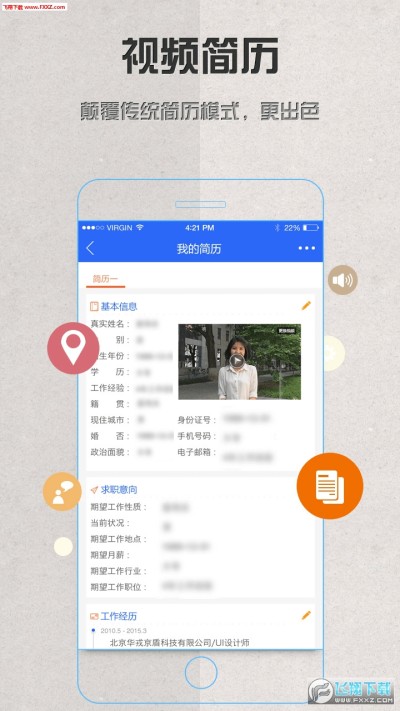视业app,国内首家专业视频简历制作平台,一个集视频简历制作、投递、招聘跟踪、视频面试等功能为一体的高端招聘应用。颠覆传统文字简历形式,个性化视频简历模板,一键编辑合成,针对HR最关注事项,全方位展示你的才华。更有全球500强企业资源,每天为您智能推荐职位,企业及个人用户全部免费使用。视业在手,工作不愁!