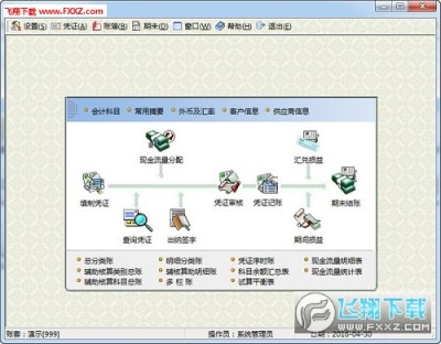 权限管理:包括添加、删除操作员,分配操作权限等管理; 账套管理:建立账套,以及账套备份、还原、复制等功能。