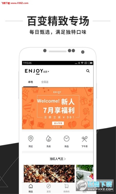 Enjoy APP是一款美食类的手机应用软件,可以帮你找到好餐厅,挑到好东西,更有不停的专属折扣,百变的精致专场,更多功能等你发现哦,感兴趣的朋友们,快来下载使用试试吧~